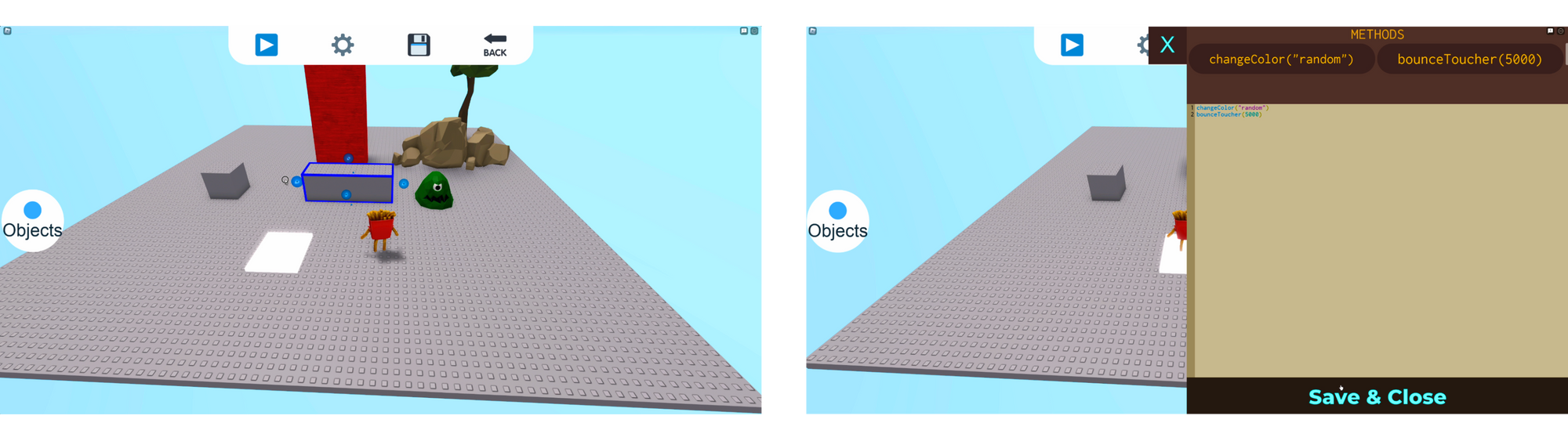 - Place objects in the level, move them around, make them bigger/smaller, and code what happens when touched! Currently, we only support changing the color and bouncing the player up in the air, but we'll add a bunch more soon.