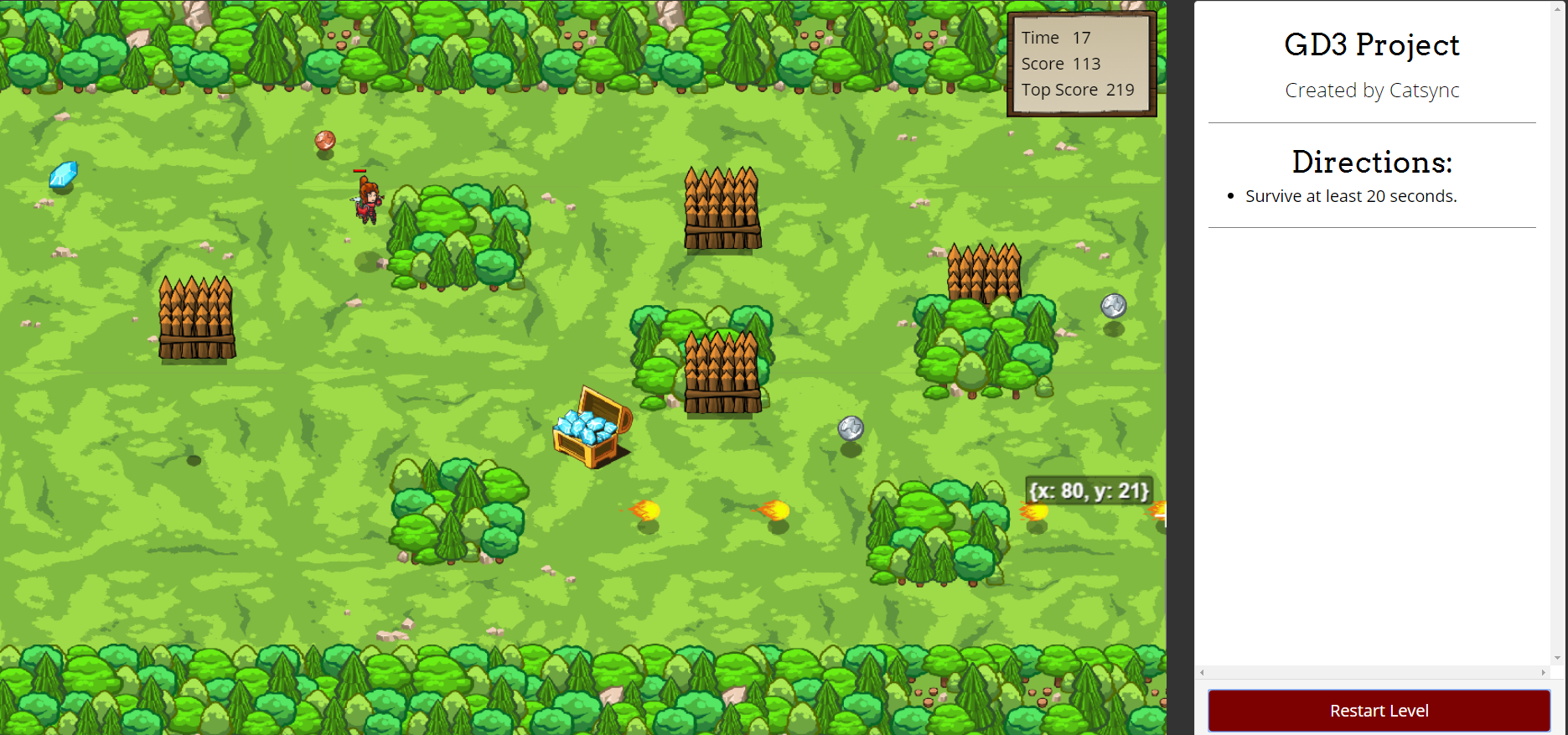 The Game Development 3 (GD3) course builds upon concepts from Computer Science 3, allowing students to create more complex interactive games to share with their friends. Students will learn how to use animations, control the movement of multiple units, and reuse spawned units, allowing them to provide compelling challenges for players that run smoothly on all computers!