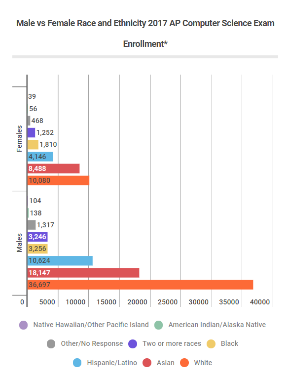 Source: *Based on combined data of Computer Science A and Computer Science Principles. See update in how ethnicity is collected and reported by the College Board.